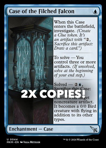 Magic the Gathering card, two copies of Case of the Filched Falcon Nonfoil in Near Mint condition. Uncommon from murders at karlov manor (MKM-44). A great addition to any collection or deck! Securely shipped in protective packaging. STOCK PHOTO USED.