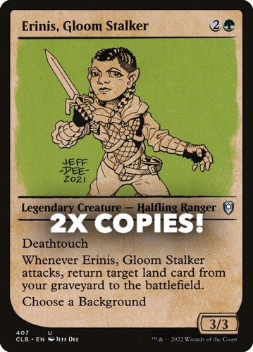 Magic the Gathering card, two copies of Erinis, Gloom Stalker Nonfoil Showcase in Near Mint condition. Uncommon from commander legends: battle for baldur’s gate (CLB-407). A great addition to any collection or deck! Securely shipped in protective packaging. STOCK PHOTO USED.