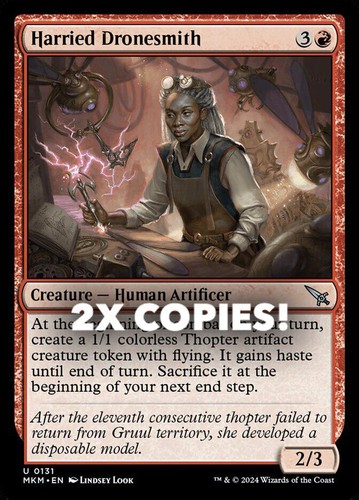 Magic the Gathering card, two copies of Harried Dronesmith Nonfoil in Near Mint condition. Uncommon from murders at karlov manor (MKM-131). A great addition to any collection or deck! Securely shipped in protective packaging. STOCK PHOTO USED.