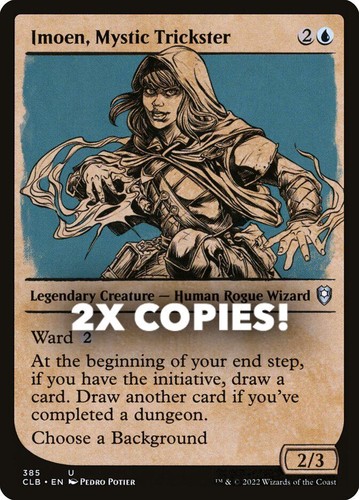 Magic the Gathering card, two copies of Imoen, Mystic Trickster Nonfoil Showcase in Near Mint condition. Uncommon from commander legends: battle for baldur’s gate (CLB-385). A great addition to any collection or deck! Securely shipped in protective packaging. STOCK PHOTO USED.