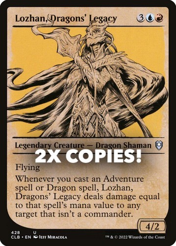 Magic the Gathering card, two copies of Lozhan, Dragons’ Legacy Nonfoil Showcase in Near Mint condition. Uncommon from commander legends: battle for baldur’s gate (CLB-428). A great addition to any collection or deck! Securely shipped in protective packaging. STOCK PHOTO USED.