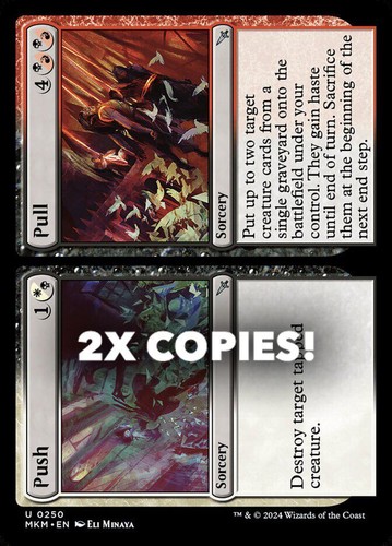 Magic the Gathering card, two copies of Push // Pull Nonfoil in Near Mint condition. Uncommon from murders at karlov manor (MKM-250). A great addition to any collection or deck! Securely shipped in protective packaging. STOCK PHOTO USED.