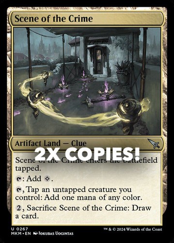 Magic the Gathering card, two copies of Scene of the Crime Nonfoil in Near Mint condition. Uncommon from murders at karlov manor (MKM-267). A great addition to any collection or deck! Securely shipped in protective packaging. STOCK PHOTO USED.