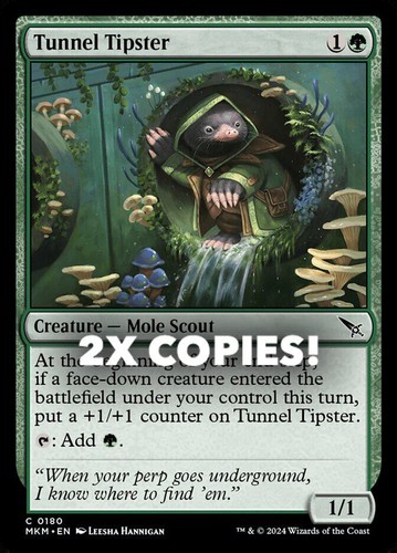 Magic the Gathering card, two copies of Tunnel Tipster Nonfoil in Near Mint condition. Common from murders at karlov manor (MKM-180). A great addition to any collection or deck! Securely shipped in protective packaging. STOCK PHOTO USED.