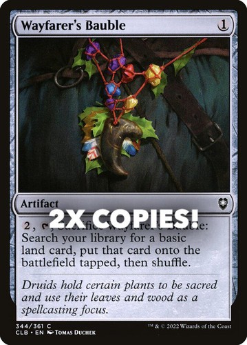 Magic the Gathering card, two copies of Wayfarer’s Bauble Nonfoil in Near Mint condition. Common from commander legends: battle for baldur’s gate (CLB-344). A great addition to any collection or deck! Securely shipped in protective packaging. STOCK PHOTO USED.