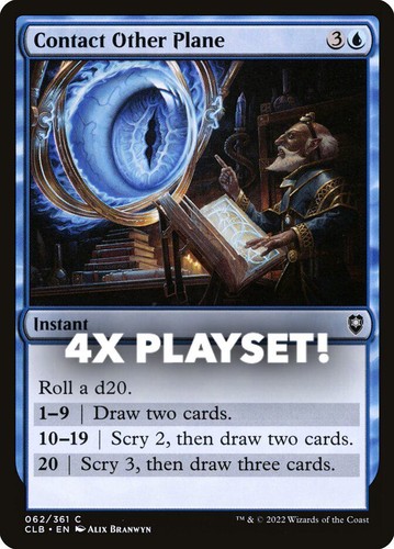 Magic the Gathering card, four copies of Contact Other Plane Nonfoil in Near Mint condition. Common from commander legends: battle for baldur’s gate (CLB-62). A great addition to any collection or deck! Securely shipped in protective packaging. STOCK PHOTO USED.