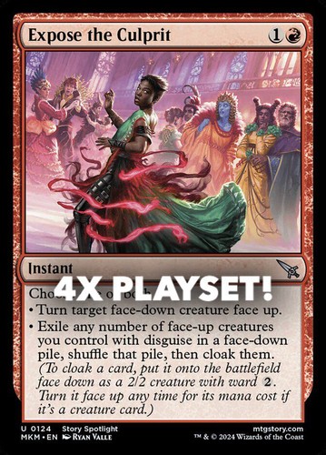 Magic the Gathering card, four copies of Expose the Culprit Nonfoil in Near Mint condition. Uncommon from murders at karlov manor (MKM-124). A great addition to any collection or deck! Securely shipped in protective packaging. STOCK PHOTO USED.