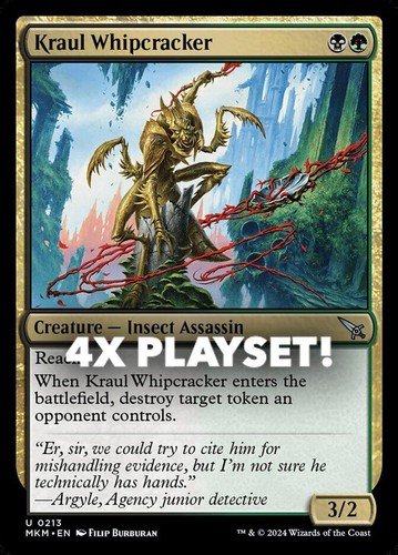 Magic the Gathering card, four copies of Kraul Whipcracker Nonfoil in Near Mint condition. Uncommon from murders at karlov manor (MKM-213). A great addition to any collection or deck! Securely shipped in protective packaging. STOCK PHOTO USED.