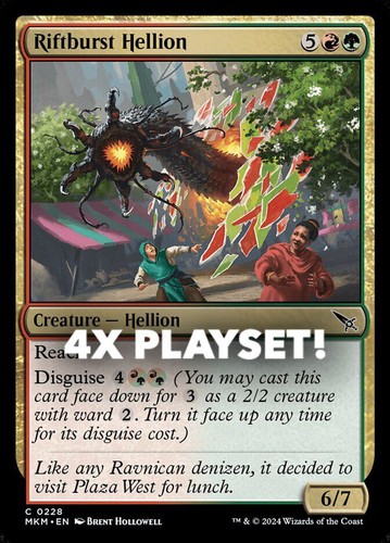 Magic the Gathering card, four copies of Riftburst Hellion Nonfoil in Near Mint condition. Common from murders at karlov manor (MKM-228). A great addition to any collection or deck! Securely shipped in protective packaging. STOCK PHOTO USED.