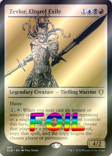 Magic the Gathering card Zevlor, Elturel Exile Foil Showcase in Near Mint condition. Rare from commander legends: battle for baldur’s gate (CLB-441). A great addition to any collection or deck! Securely shipped in protective packaging. STOCK PHOTO USED.